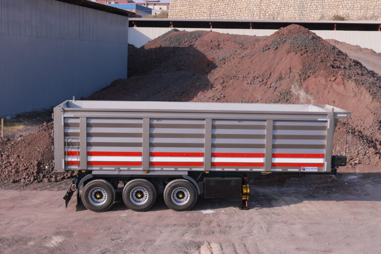 Arka kapak: minimum 3 mm Hardox 450, 1900 mm yüksekliğinde, mekanik tip ve iki yöne açılır yapıdadır.