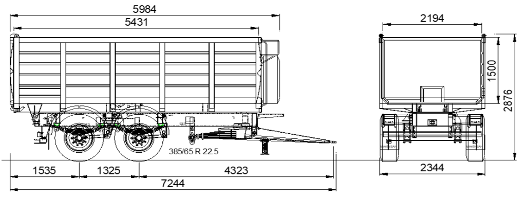97/27/EC * 2003/19/EC direktifine uygun yüksek dayanımlı çelikten profillerle kaynatılarak desteklenen mukavim kova; taban 2 mm sac, yanlar yüksek dayanımlı çelikten, 1500 mm yüksekliğinde 2 açılır küçük pencereli arka kapak.